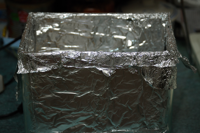 這真的是魚缸,利用鋁鉑紙把魚缸處理一下,得到這個結果。
