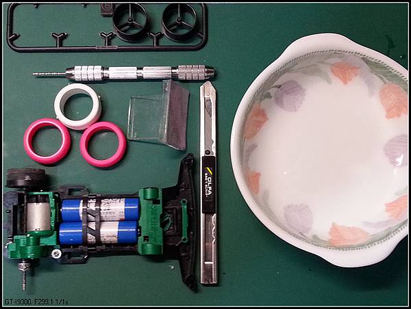 胎。但因為很硬,沒辦法直接用工具車,對半切,所以先切出痕跡後,再用刀片